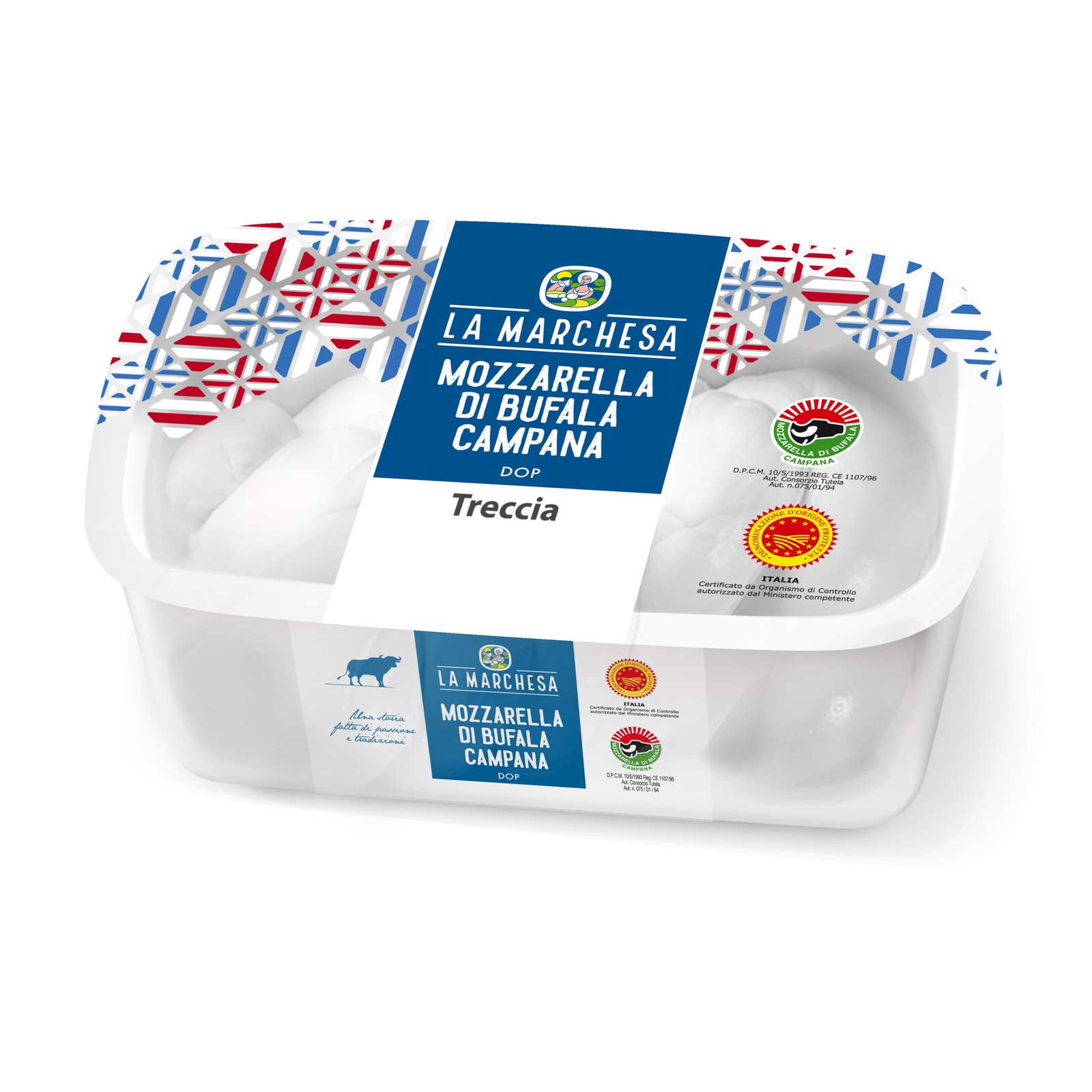 LATTE di Bufala pastorizzato, siero innesto naturale (LATTE), sale, caglio di origine animale.